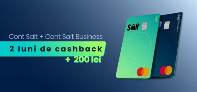 5% cashback timp de o luna, iar daca isi deschide si un cont de Salt Business, va beneficia de 1% cashback la cheltuieli de marketing digital, benzinarii si supermarketuri, pana la 31 decembrie.